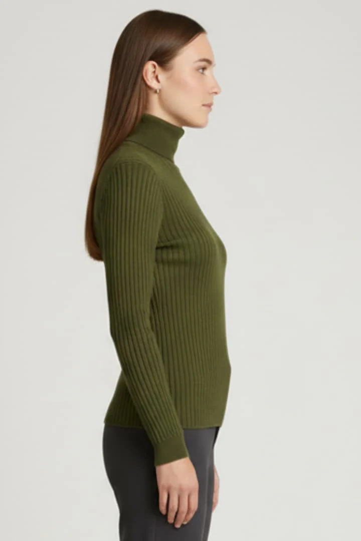 Women’s Turtleneck Sweater with Long Sleeves and Ribbed Surface