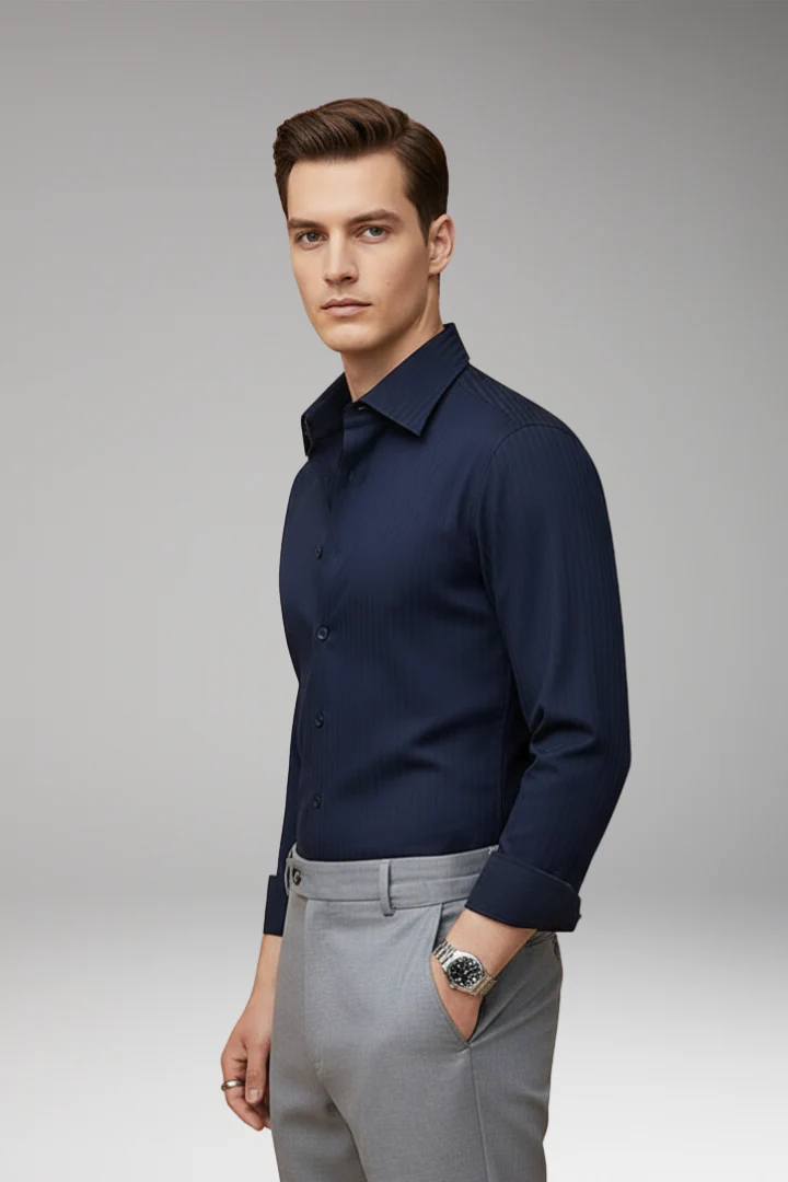 Men’s dress shirt designed with subtle vertical stripes